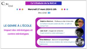 Change your cover photoUpload Change your cover photoUpload Anaelle Camarda Camarda This user account status is Approved About About Posts Posts Comments Comments Prochain co’ciliabule : Fake news et conspirations: Quels impacts chez les adolescents, et comment l’école peut les protéger ? 3 days ago in: Co-ciliabule no comments La place des erreurs dans l’apprentissage 6 months ago in: Co-ciliabule no comments Co’ciliabule : La place des arts à l’école : Le cas de la musique 8 months ago in: Co-ciliabule no comments Co’ciliabule (23/09/2024): Repenser la motivation – Comment donner envie d’apprendre ? 1 year ago in: Co-ciliabule no comments Prochain co’ciliabule : Le genre et l’école – Impact des stéréotypes et des contre-stéréotypes 2 years ago in: Co-ciliabule no comments Psychologie de la créativité – Todd Lubart et collaborateurs (2015, 2e édition) 2 years ago in: Club de lecture no comments Co’ciliabule du 29/11/23: La créativité, cela s’apprend ! 2 years ago in: Co-ciliabule no comments Interview écrite d’Aurélie Pasquier-Berland – Développer les compétences psychosociales à l’école, ça sert à quoi ? 2 years ago in: interview chercheur no comments Co’ciliabule : Le geste moteur, aide au développement cognitif et aux apprentissages scolaires 3 years ago in: Co-ciliabule no comments Interview de Pascale HAAG – Développer le bien-être des élèves 3 years ago in: apprentissages, Bien être, Compétences psychosociales no comments load more posts
